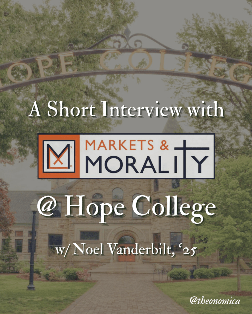 Markets & Morality is a student discussion group at Hope College in Holland, Michigan. We reached out to them for a short interview about their organization’s mission and work. The following answers are courtesy of program assistant Noel Vanderbilt, class… Continue reading